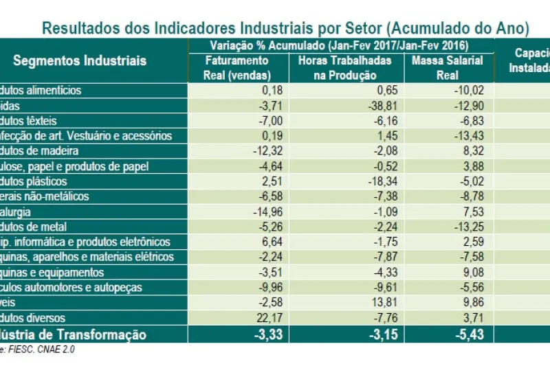 Faturamento da indústria de SC acumula queda de 3,3% no bimestre