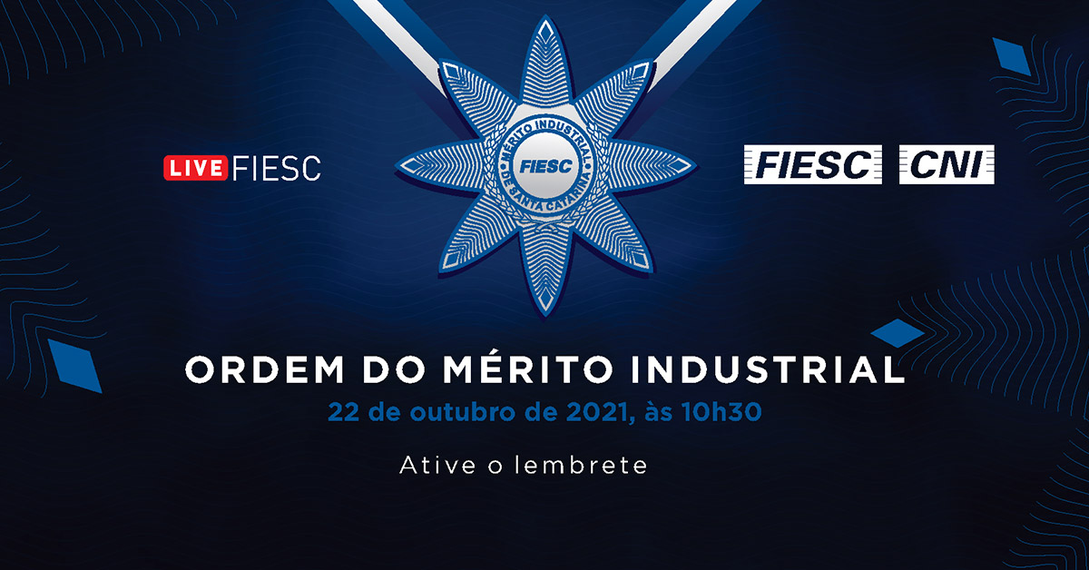 Florianópolis, 22.10.2021 - A Federação das Indústrias (FIESC) entregará a Ordem do Mérito Industrial de Santa Catarina durante solenidade, nesta sexta-feira, dia 22 de outubro, às 10h30, na sede da entidade, em Florianópolis, e transmitida pelo canal do YouTube. A cerimônia será realizada com rigorosa observação dos protocolos de segurança e com um número limitado de convidados.