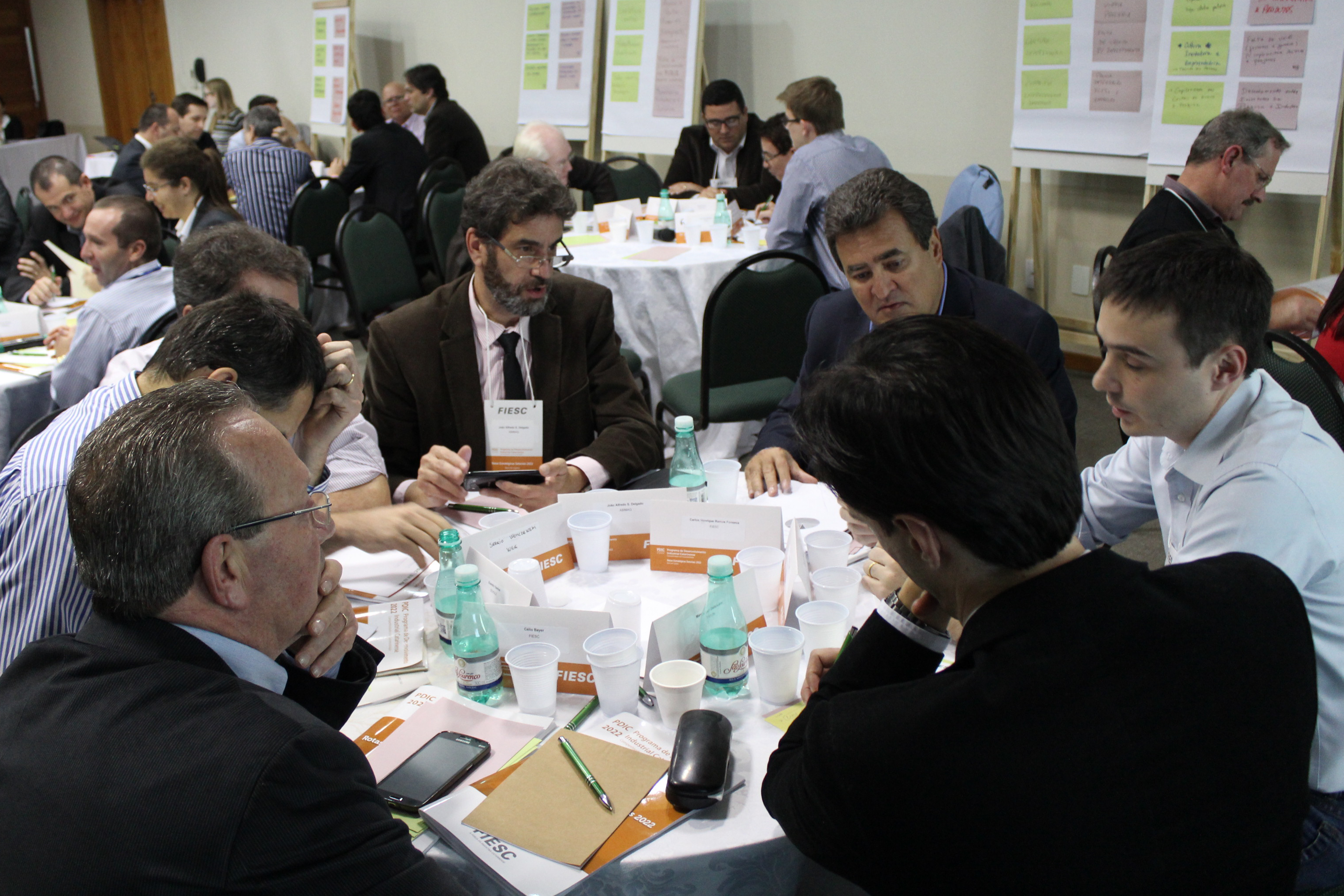 Jaraguá do Sul, 15.04.2015 - Apontada como um setor que pode contribuir para reverter o processo de desindustrialização do Brasil, a indústria catarinense de bens de capital se reuniu nestas terça e quarta (14 e 15) em Jaraguá do Sul. No encontro, os 63 participantes, entre industriais, executivos, pesquisadores e especialistas, concordaram que a crise de expectativas do setor produtivo nacional tem afetado o segmento, e que é preciso investir fortemente em inovação. O encontro integra o Programa de Desenvolvimento Industrial Catarinense (PDIC 2022), desenvolvido pela Federação das Indústrias de Santa Catarina (FIESC).