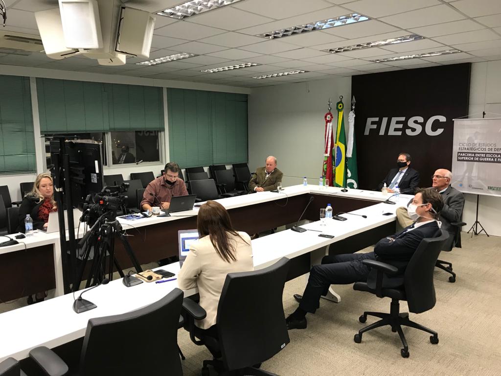 Florianópolis, 3.7.2020 – O 3º Ciclo de Estudos Estratégicos de Defesa (Ceed) se iniciou oficialmente nesta quinta-feira, dia 2, com palestra sobre o papel da estratégia e da inteligência empresarial para o desenvolvimento regional. Ela foi proferida pelo professor do William Perry Center for Hemispheric Defense Studies, Luis Bitencourt. A iniciativa é da Escola Superior de Guerra e da Federação das Indústrias (FIESC), por meio do seu Comitê da Indústria de Defesa, o Comdefesa.