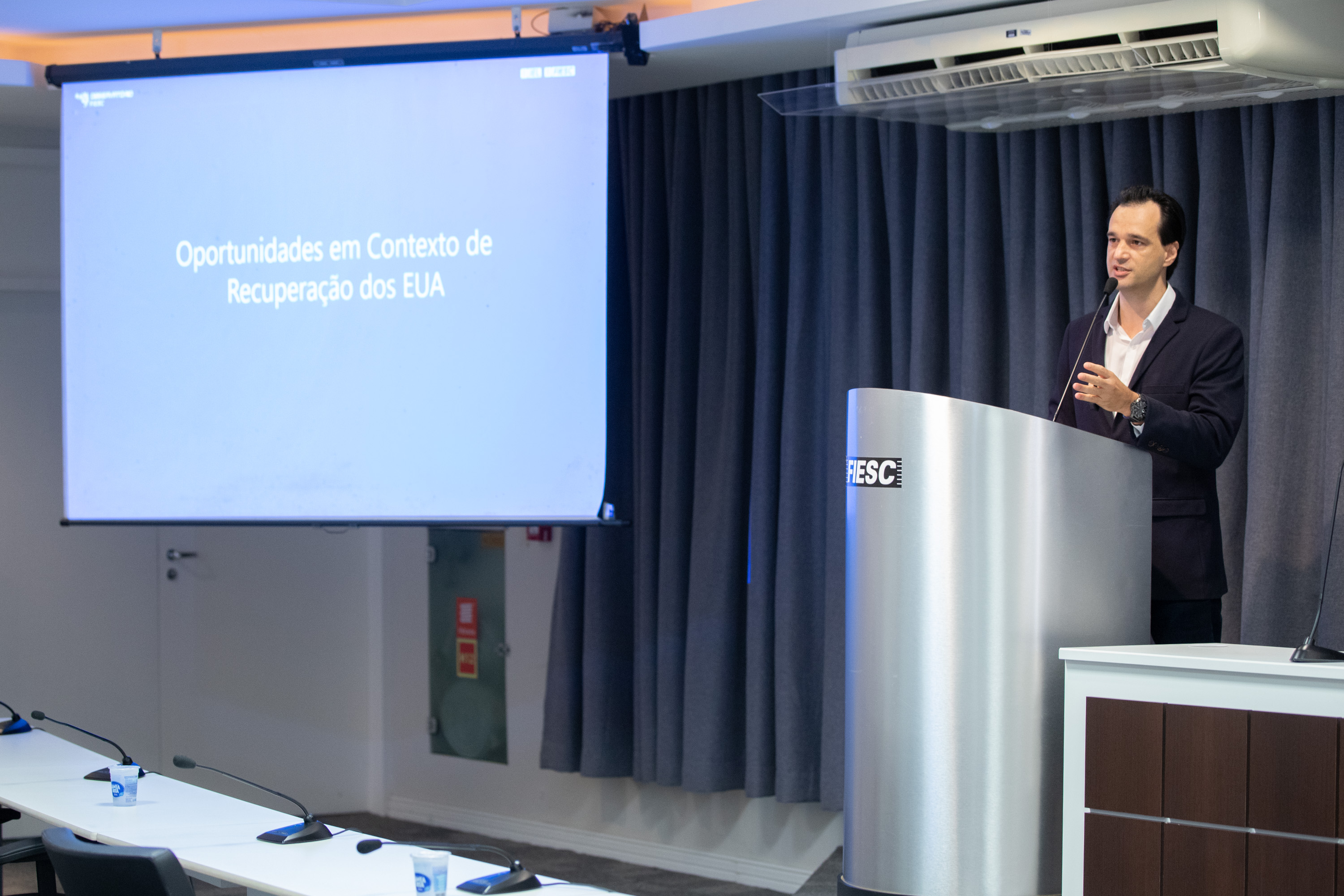 Florianópolis, 23.4.2021 - A recuperação da economia americana proporciona boas oportunidades para Santa Catarina, na avaliação do economista Pablo Bittencourt, consultor da Federação das Indústrias (FIESC) e professor da Universidade Federal de Santa Catarina (UFSC). Em palestra apresentada na reunião on-line da diretoria da FIESC, nesta sexta-feira (23), ele destacou que o avanço americano se dará com base na elevada taxa de vacinação e em pacotes que devem ser lançados pelo governo Biden, um de curto e outro de longo prazo. A tendência, segundo o economista, é a elevação do custo de mão de obra naquele país, o que tende a abrir espaços em outras nações para atividades intensivas em trabalho, como confecções, têxteis, calçados e cerâmica.