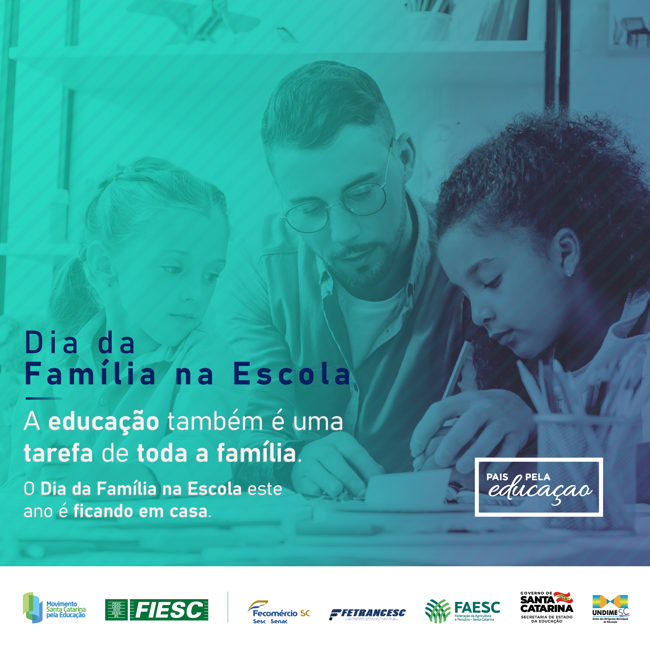 Florianópolis, 24.04.2020 - As atividades do Dia da Família na Escola, neste ano, serão em casa, atendendo a orientação dos órgãos de saúde para enfrentar a pandemia provocada pelo coronavírus. A data, celebrada sempre em abril, conta com uma ação digital desde quinta-feira (23) realizada pela Federação das Indústrias (FIESC), Secretaria de Estado da Educação, Undime/SC e federações do comércio (Fecomércio), do transporte (Fetrancesc) e da agricultura (Faesc), entidades que integram o Movimento Santa Catarina pela Educação.