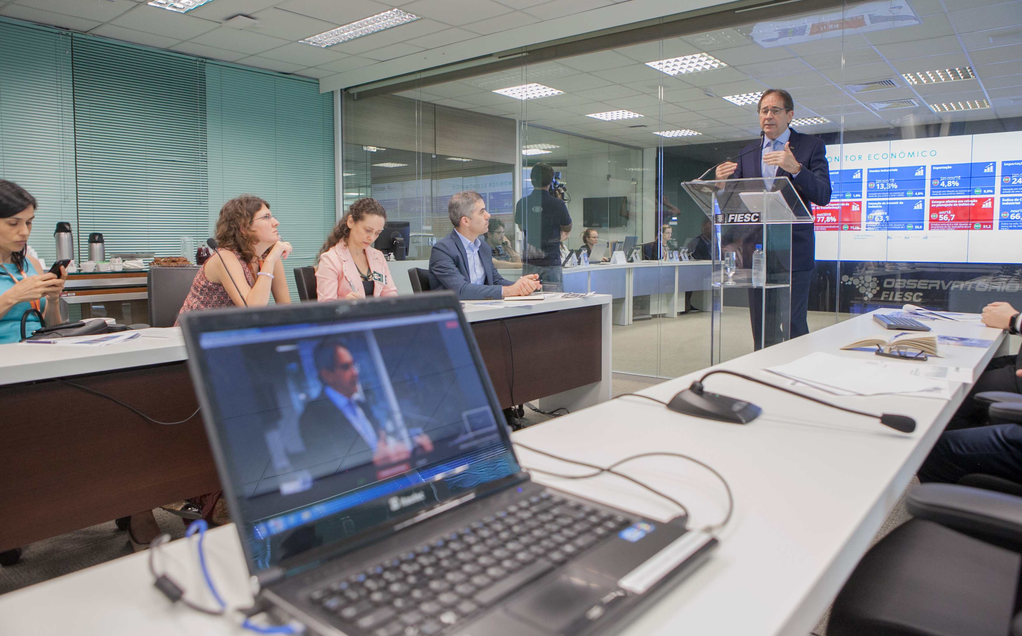 Florianópolis, 11.12.2018 – O desempenho da economia catarinense praticamente retornou ao patamar pré-crise. No acumulado do ano até setembro, conforme dados do Banco Central, estima-se que o Produto Interno Bruto do estado (PIB) cresceu 2,7%, acima da média nacional, que foi 1,2% no período. Com isso, o desempenho estadual está apenas 0,5 ponto percentual abaixo do registrado em 2014, último ano antes do início da crise. Na avaliação da FIESC, as perspectivas para 2019 são de crescimento maior da economia. Os dados foram apresentados pelo presidente da entidade, Mario Cezar de Aguiar, nesta terça-feira (11), em Florianópolis.