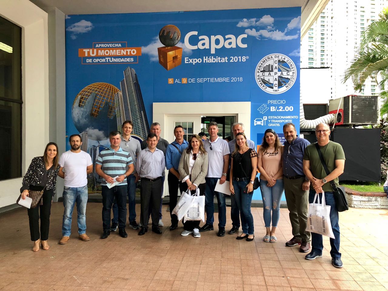 Florianópolis, 7.9.2018 – Empresários do setor da construção que integram missão comercial ao Panamá participam da Expo Hábitat, feira realizada na Cidade do Panamá, focada nas tendências do setor, que prevê receber cerca de 35 mil visitantes. O evento apresenta as últimas novidades em acabamento, decoração, máquinas, tecnologia e produtos para a cadeia da construção. Nesta semana, a delegação também conheceu o Canal do Panamá, a Zona Livre de Cólon e o projeto Panamá Pacífico. A missão é promovida pela Câmara de Desenvolvimento da Indústria da Construção da FIESC e se encerra no dia 9 de setembro.