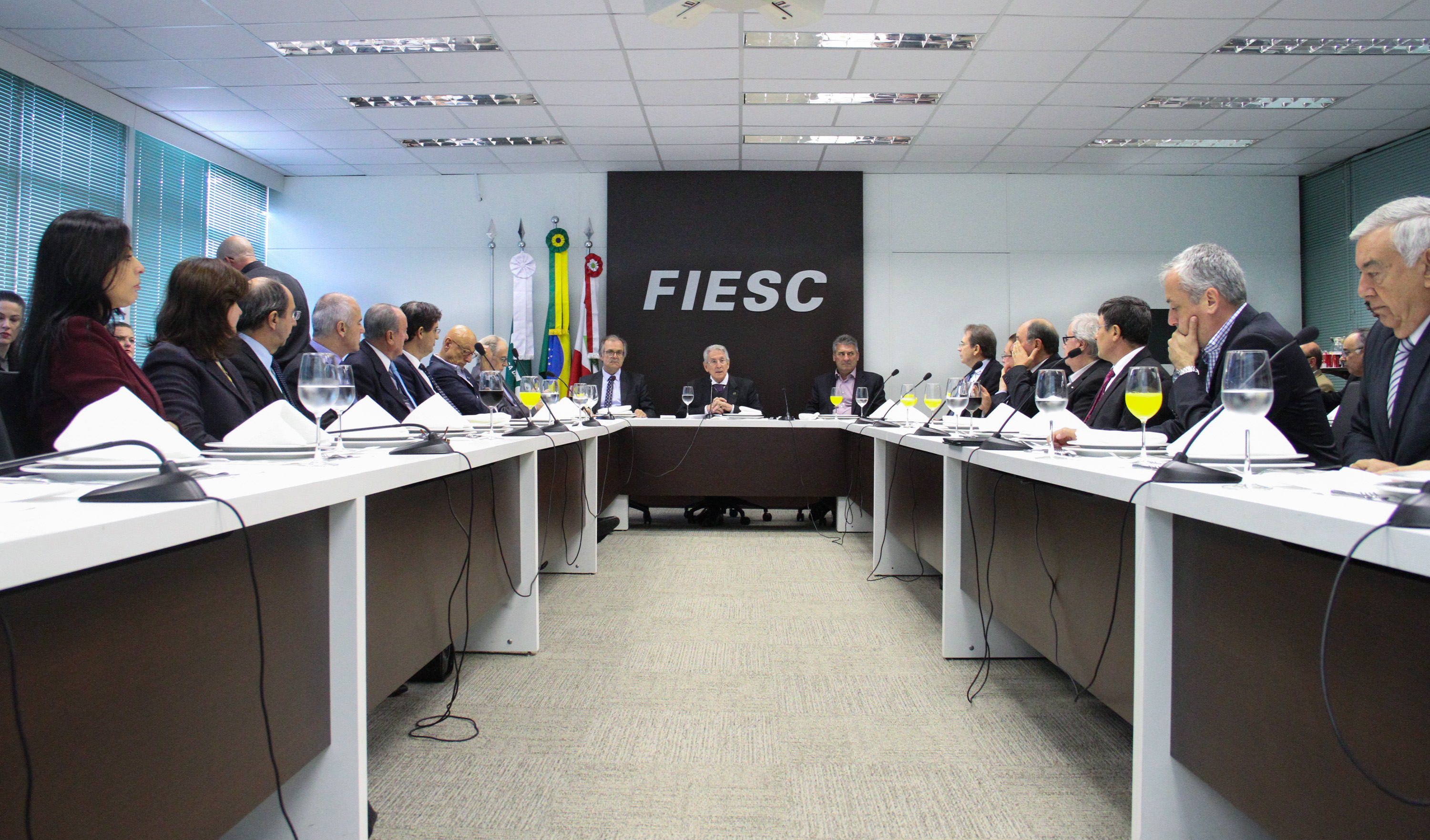 Florianópolis, 2.5.2016 – A Federação das Indústrias de Santa Catarina (FIESC) entregou ao Fórum Parlamentar Catarinense a Agenda para o Brasil sair da Crise 2016-2018 e a Agenda Legislativa da Indústria 2016. O presidente da instituição, Glauco José Côrte, fez um panorama da indústria brasileira e catarinense e destacou que nos últimos anos o setor em nível nacional perdeu representatividade no Produto Interno Bruto (PIB). “Entre 2010 e 2013 a participação da indústria como um todo (incluindo indústria de transformação, extrativa, construção e serviços industriais de utilidade pública) caiu de 27% para 25% do PIB”, informou, durante reunião-almoço, nesta segunda-feira (2), em Florianópolis. Além dos parlamentares, participaram representantes do Conselho das Federações Empresariais de Santa Catarina (COFEM), integrado pela FIESC, FAESC, FACISC, FAMPESC, FCDL, FECOMÉRCIO e FETRANCESC.