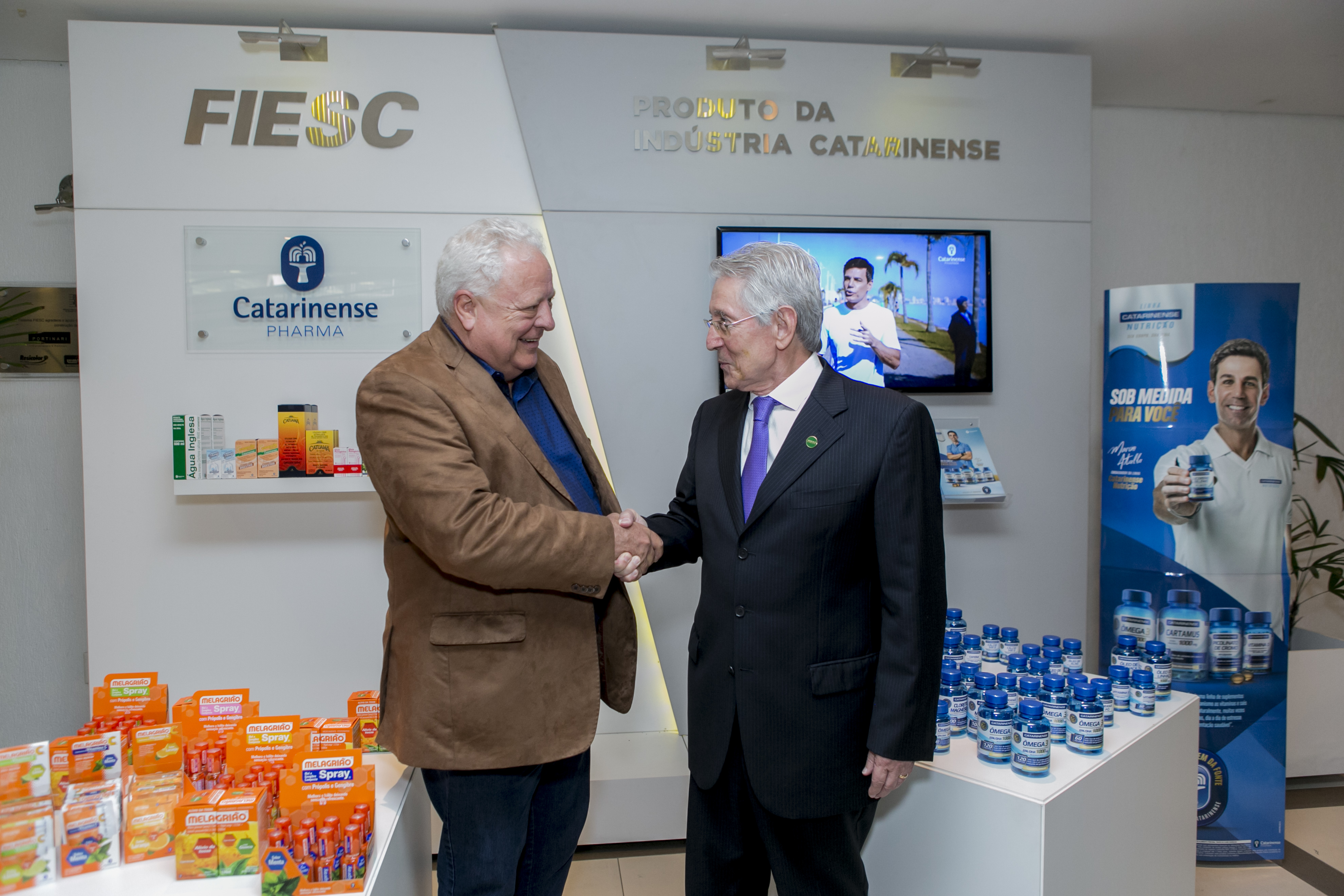 Florianópolis, 16.3.2018 – O Catarinense Pharma, de Joinville, laboratório que desenvolve e comercializa medicamentos, entre eles fitoterápicos e suplementos, expõe produtos no Espaço Indústria. O ambiente está localizado na Federação das Indústrias de Santa Catarina (FIESC), em Florianópolis, e mostra, todos os meses, o trabalho de empresas e instituições do Estado. O presidente da empresa, Adriano Bornschein Silva, apresentou os principais produtos fabricados pela companhia à diretoria da FIESC, nesta sexta-feira (16), em Florianópolis. “Nos últimos três anos dobramos de tamanho e a nossa projeção é dobrar de tamanho até 2020”, disse ele, lembrando que esse desempenho é puxado pelo aumento da expectativa de vida que leva as pessoas a melhorar os cuidados com a saúde para garantir o bem-estar, mesmo que aos 80 ou 90 anos.