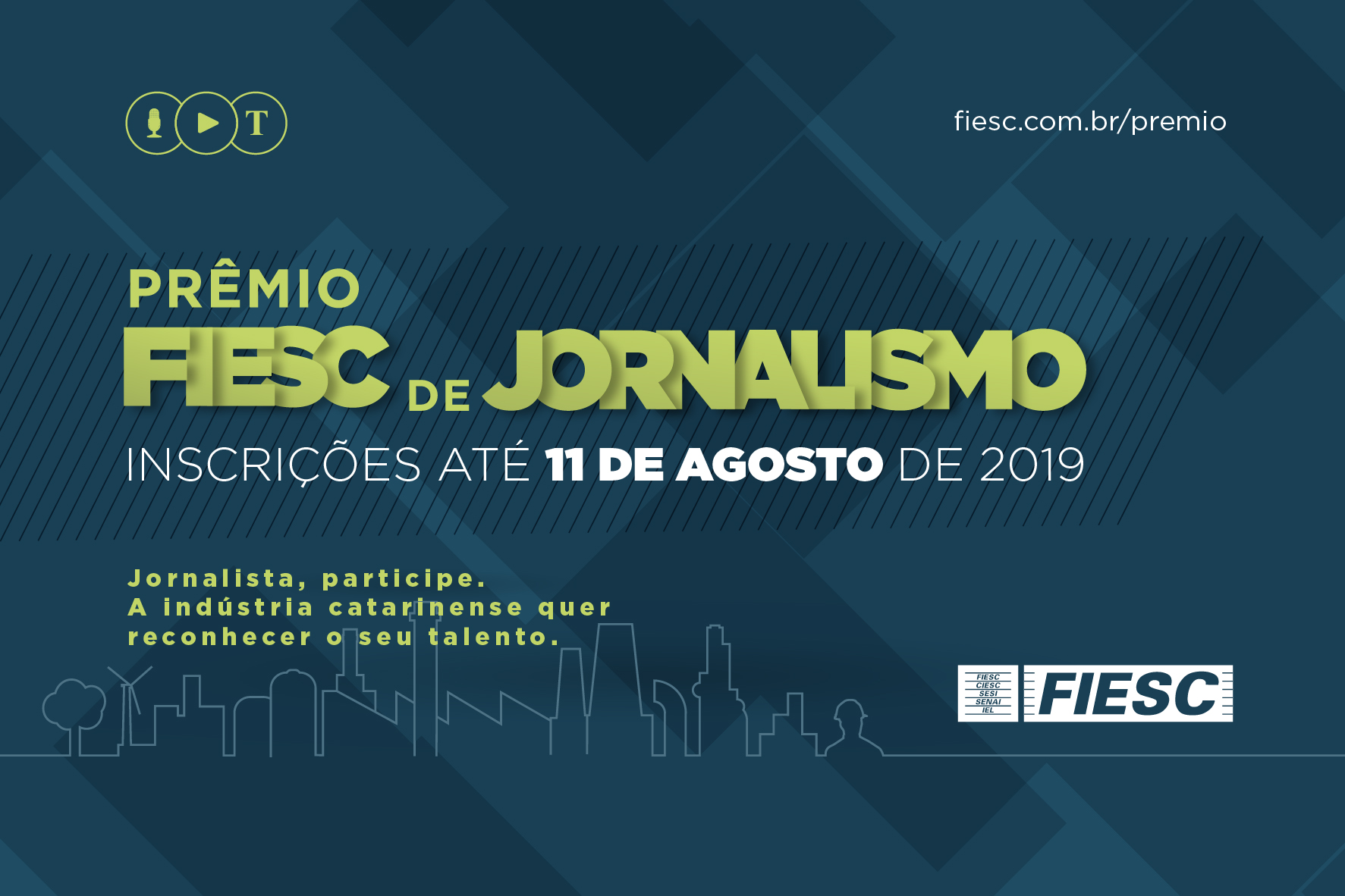 Florianópolis, 30.4.2019 – Estão abertas a as inscrições para o Prêmio FIESC de Jornalismo 2019, que totaliza R$ 81 mil. Podem concorrer reportagens ou séries publicadas em língua portuguesa, no período de 17 de setembro de 2018 até 11 de agosto de 2019, em veículos impressos, internet, televisão e rádio de qualquer parte do país. A proposta é reconhecer reportagens que enfoquem a economia industrial catarinense ou temas relacionados, tais como educação e qualidade de vida do trabalhador; competitividade, tecnologia e inovação; ambiente para negócios e responsabilidade socioambiental. Mais informações podem ser obtidas no site fiesc.com.br/premio .