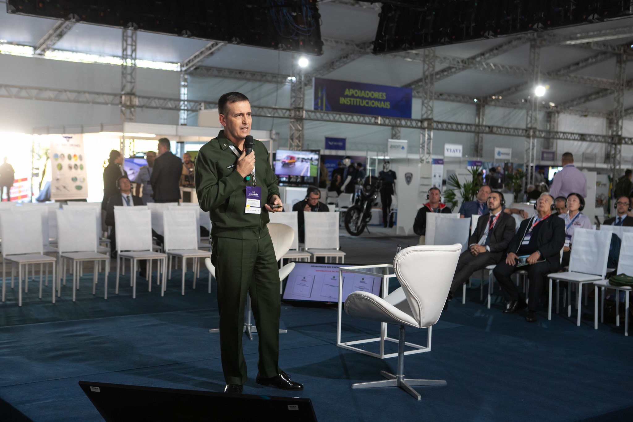 Florianópolis, 19.05.2022 - Os empresários participantes da SC Expo Defense 2022 têm a oportunidade de ampliar ou iniciar negócios com as Forças Armadas. No primeiro dia do evento (19) eles puderam acompanhar palestras de representantes do Exército, Marinha e Aeronáutica. Já na sexta-feira (20), serão realizadas rodadas de negócios, nas quais os industriais podem sanar dúvidas a respeito das normas e modelos de aquisições do setor de defesa.
