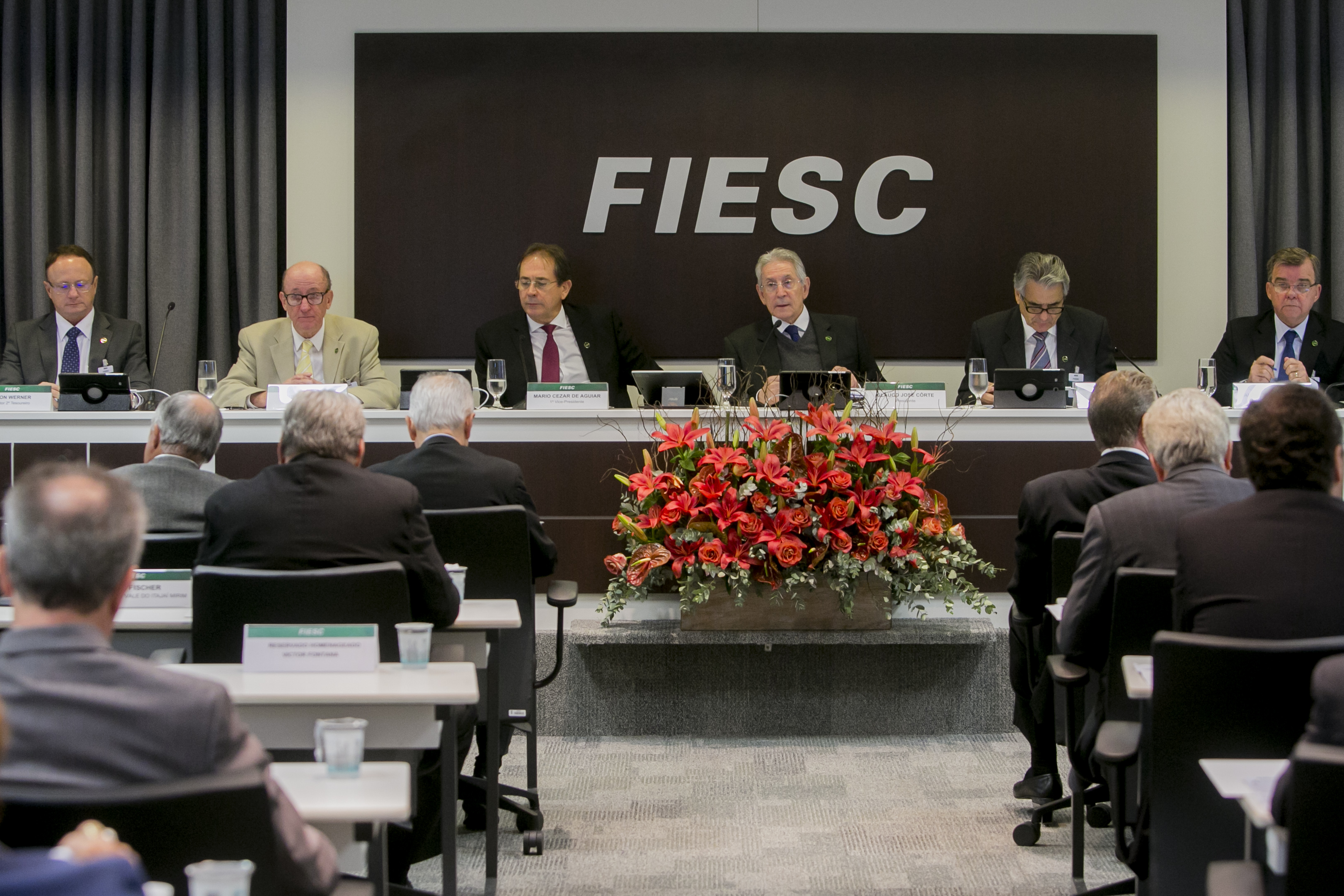 Florianópolis, 29.4.2016 – Cecília Ana Rubini Menegotti (Malhas Menegotti), Cesar Gomes Junior (Portobello), Colombo Machado Salles (ex-governador de SC) e Ninfo Valtero König (Atrio Hotéis) receberão a Ordem do Mérito Industrial de Santa Catarina. Instituída pela Federação das Indústrias de Santa Catarina (FIESC), a comenda é o mais alto reconhecimento da indústria do Estado. O anúncio dos homenageados foi realizado na manhã desta sexta-feira (29), na reunião de diretoria da entidade. A distinção será entregue no dia 20 de maio, durante cerimônia para convidados, que marcará o encerramento da Jornada Inovação e Competitividade da Indústria Catarinense.