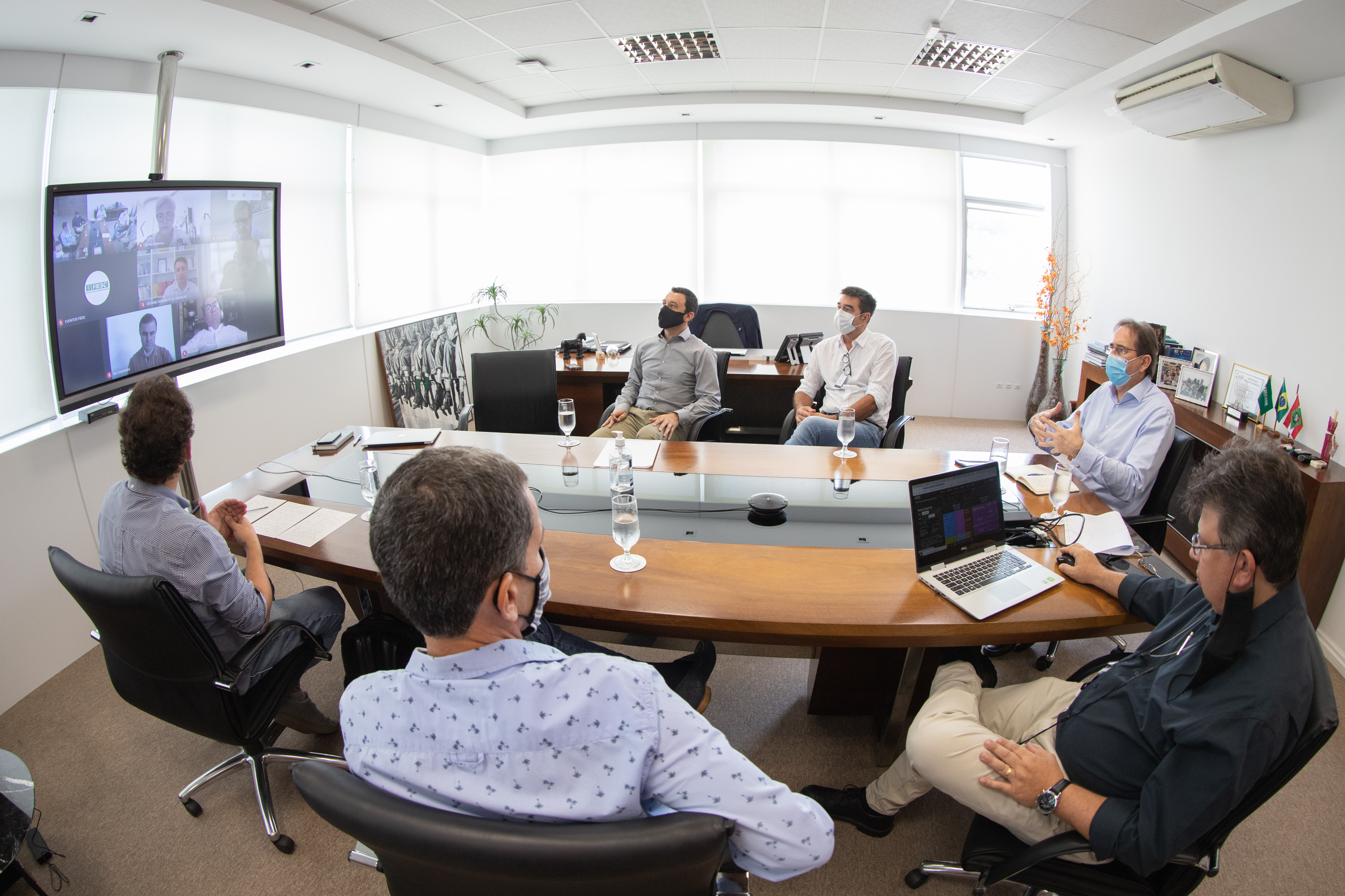 Florianópolis, 30.11.2020 – Em reunião com empresários do setor da moda de Santa Catarina, o presidente da FIESC, Mario Cezar de Aguiar, debateu estratégias para fortalecer o segmento no estado e ampliar a internacionalização das empresas. O encontro foi realizado na sede da entidade, em Florianópolis, nesta segunda-feira, da 30, com participação virtual de representantes de instituições como o Santa Catarina Moda e Cultura (SCMC), Sintex (Sindicato das Indústrias de Fiação, Tecelagem e do Vestuário de Blumenau) e Sindicato das Indústrias da Fiação, Tecelagem, Confecção e do Vestuário do Alto Vale do Itajaí (Sinfiatec).