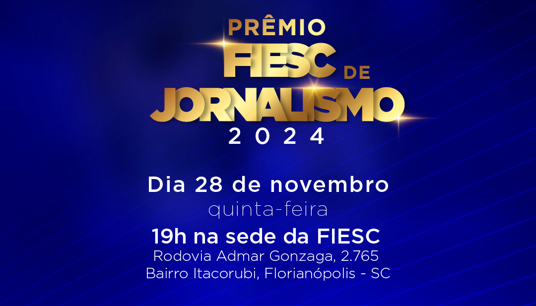 Florianópolis, 27.11.2024 - A Federação das Indústrias (FIESC) realizará, nesta quinta-feira (28), a entrega do Prêmio FIESC de Jornalismo 2024. Os nove trabalhos finalistas – três em cada categoria (Áudio, Texto e Vídeo) – conhecerão sua classificação final e receberão a premiação em dinheiro. A solenidade contará com a presença de profissionais de imprensa e de lideranças industriais.