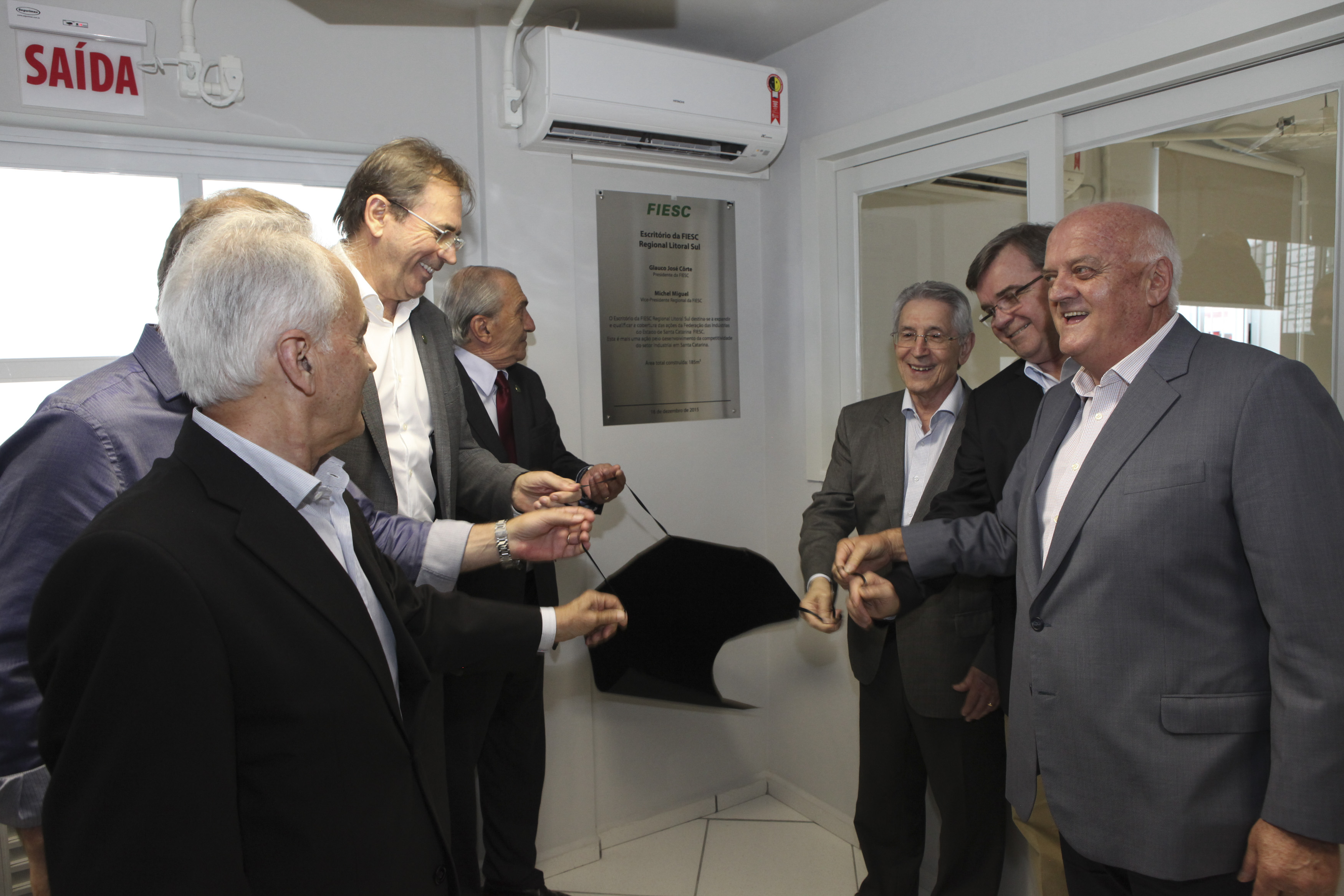 Tubarão, 16.12.2015 – A Federação das Indústrias de Santa Catarina (FIESC) entregou nesta quarta-feira (16), em Tubarão, o escritório da Vice-Presidência Regional Litoral Sul e a revitalização do SENAI, resultado de investimentos de R$ 1,8 milhão, dos quais R$ 1,6 milhão nas obras civis e R$ 200 mil em equipamentos. Na oportunidade também foi realizada a solenidade de conclusão do curso de carpintaria, realizado por 16 alunos, além da doação, para uma entidade filantrópica e para uma família carente, das duas casas construídas durante a capacitação.