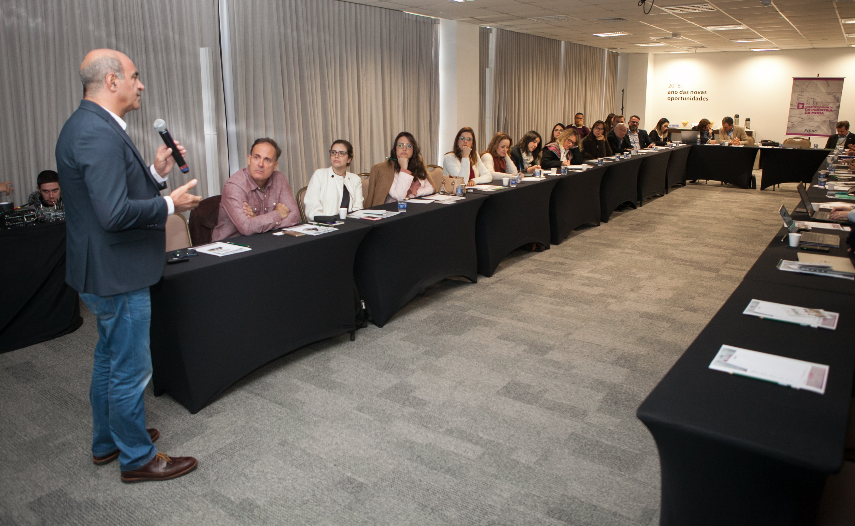 Na reunião, o especialista Juliano Pacheco falou sobre as tendências do setor, segundo o Programa de Desenvolvimento Industrial Catarinense (PDIC). Marcos Lichtblau, presidente da Câmara de Máquinas Têxteis e de Confecção da ABIMAQ, relatou sobre a Febratex, realizada em Blumenau de 21 a 24 de agosto.
