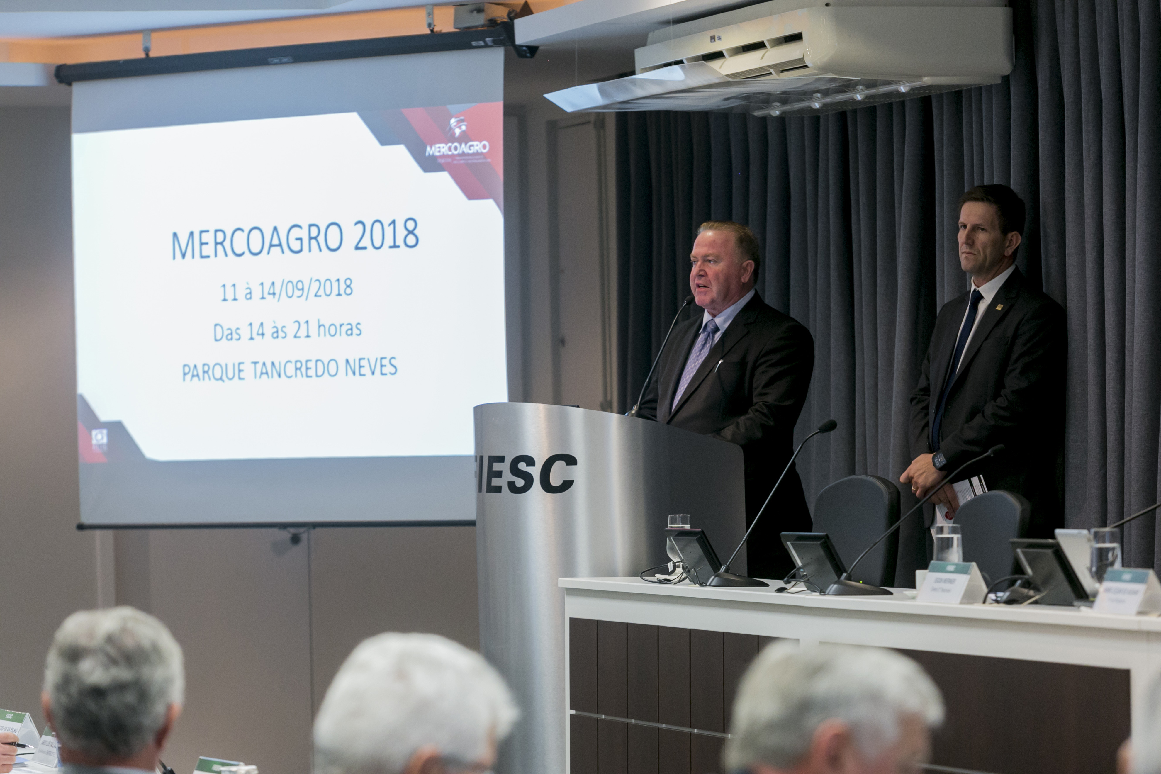Florianópolis, 20.4.2018 – Empresários catarinenses conheceram nesta sexta-feira (20), durante a reunião de diretoria da Federação das Indústrias de Santa Catarina (FIESC), detalhes da 12ª edição da Feira Internacional de Negócios, Processamento e Industrialização da Carne, a Mercoagro. O evento ocorre de 11 a 14 de setembro, no Parque Tancredo Neves, em Chapecó.