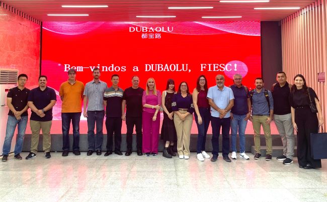 O restante do grupo acompanhou o vice-presidente da FIESC, Gilberto Seleme, na visita à fabricante de artigos de couro Dubaolu.