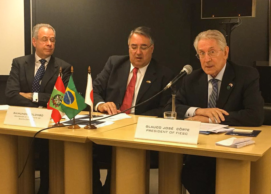 Florianópolis, 6.3.2017 – Em missão catarinense ao Japão, o presidente da Federação das Indústrias de Santa Catarina (FIESC), Glauco José Côrte, destacou que o Estado busca ampliar as exportações de carne suína ao País asiático para alcançar o mesmo patamar dos embarques de carne de frango, que em 2016 totalizaram US$ 260,6 milhões, contra US$ 5,9 milhões das exportações de carne suína ao Japão no mesmo período. “O mercado japonês está aberto, mas os espaços temos que conquistar”, afirmou. Nesta segunda-feira (6), a FIESC coordenou seminário de oportunidades de negócios e investimentos, realizado em conjunto com a Embaixada do Brasil no Japão, localizada em Tóquio. O encontro teve a presença de 40 participantes, entre empresários japoneses e executivos das brasileiras WEG e BRF no Japão.