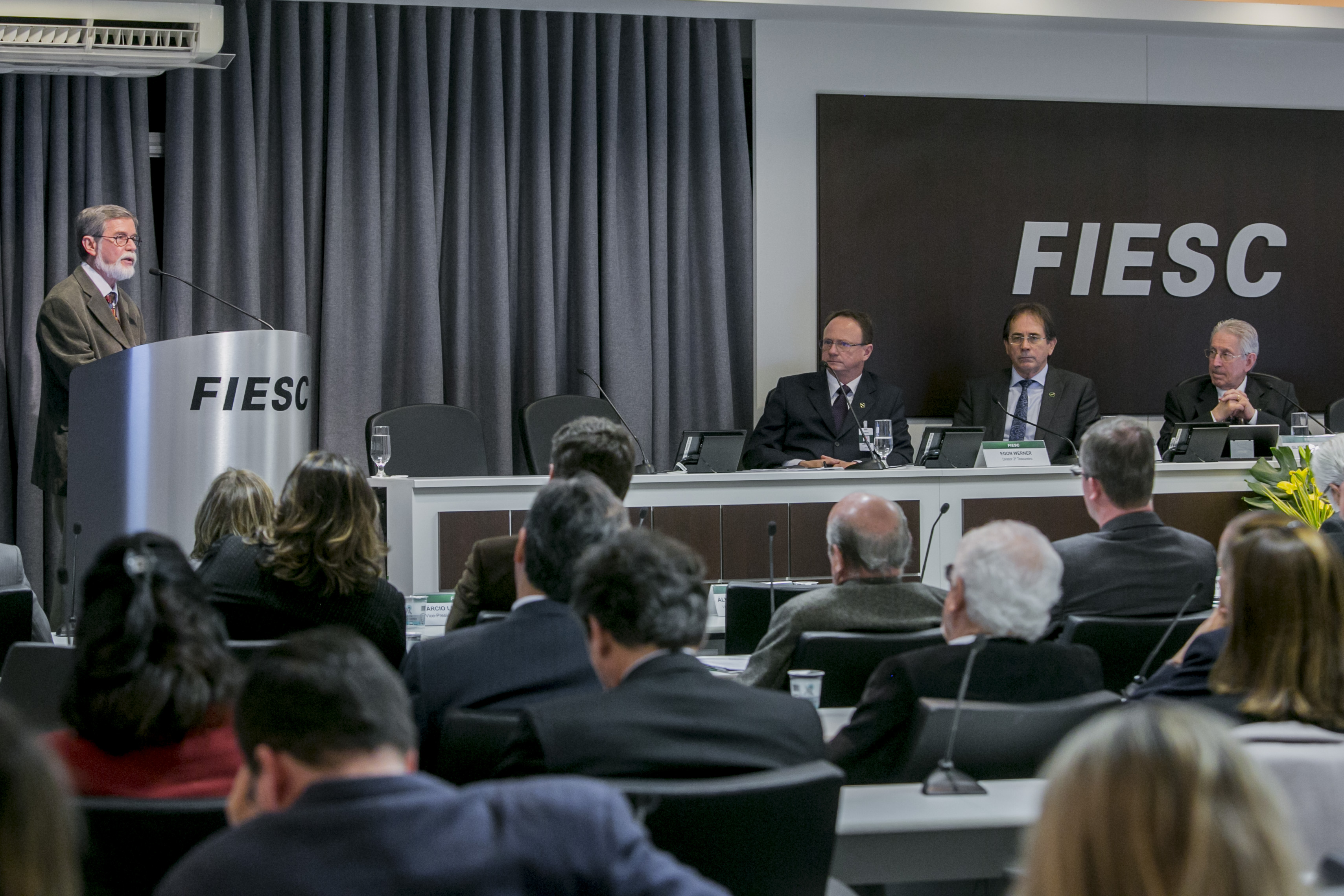 Florianópolis, 19.8.2016 – O professor de relações internacionais da USP José Augusto Guilhon acredita que no médio e longo prazos o Mercosul deve sofrer esvaziamento. Durante palestra na reunião de diretoria da Federação das Indústrias de Santa Catarina (FIESC), nesta sexta-feira (19), ele disse que “o governo Temer herdou uma situação altamente conflituosa, particularmente, no caso do Mercosul, motivada pela suspensão do Paraguai do bloco, durante o processo de impeachment do então presidente Fernando Lugo.