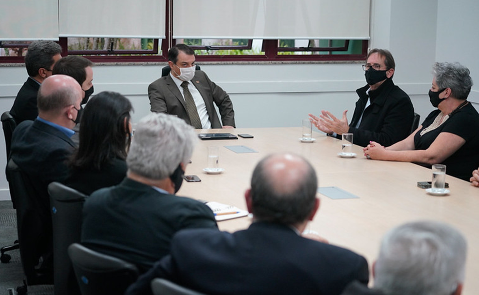 Florianópolis, 28.7.2020 – A Federação das Indústrias de Santa Catarina (FIESC) considera positiva a decisão do governo do estado de retirar o projeto da reforma da Previdência estadual da Assembleia Legislativa, anunciada na tarde desta terça-feira (28) ao setor empresarial. “Concordamos, porque é um projeto extremamente importante para o estado e que precisa ser muito bem discutido com a sociedade para trazer resultados positivos para Santa Catarina”, disse o presidente da instituição, Mario Cezar de Aguiar. Ele e os demais presidentes das entidades integrantes do Conselho das Federações Empresariais de Santa Catarina (COFEM) foram recebidos pelo governador Carlos Moisés no Centro Administrativo.