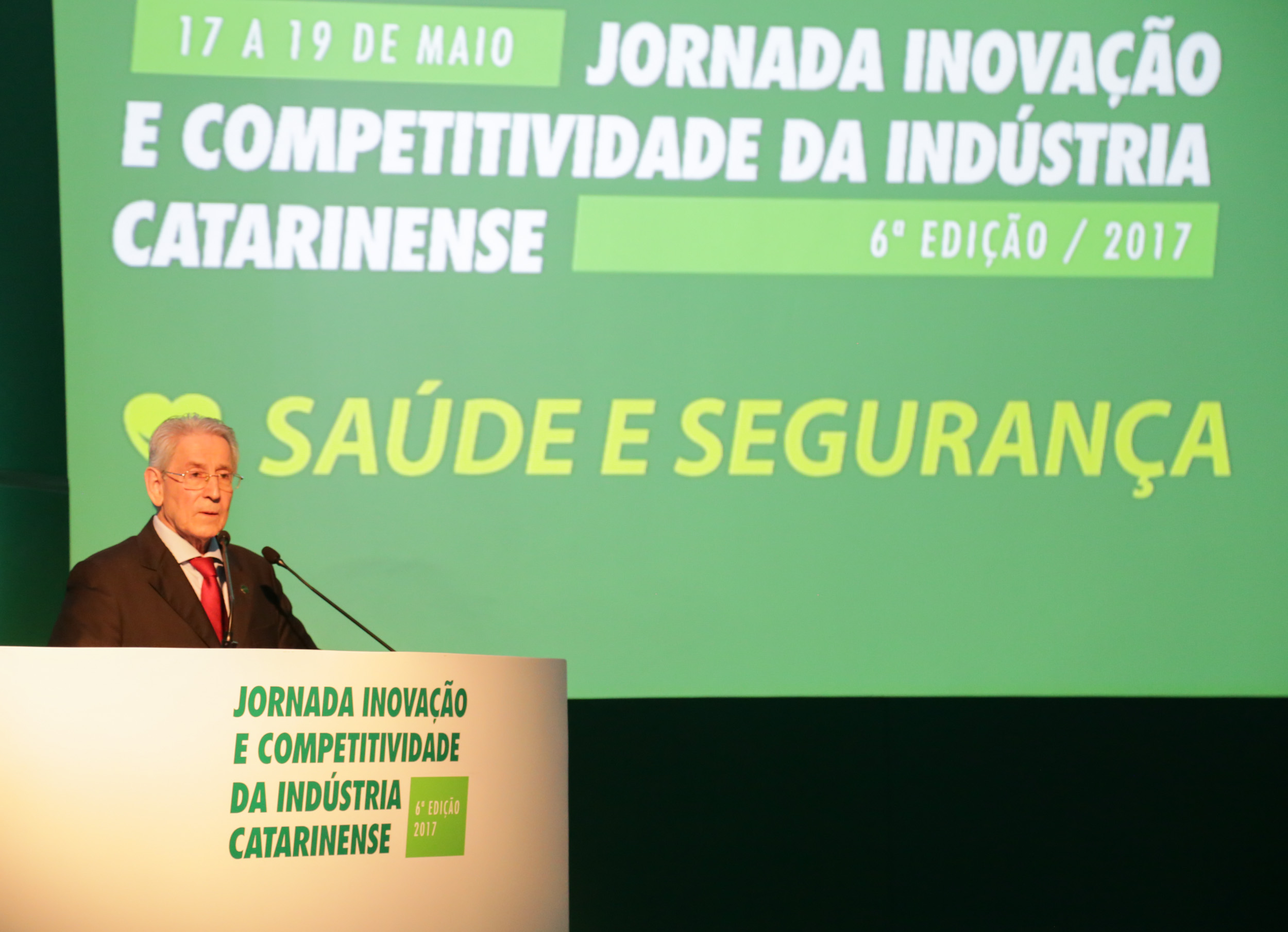 Florianópolis, 17.05.2017 – “As tendências demográficas demonstram a necessidade de as empresas e seus executivos incluírem a gestão em saúde e bem-estar entre as suas prioridades. Para evitar um sério problema no futuro, os cuidados com a saúde física, psíquica e a qualidade de vida dos trabalhadores, precisam começar a ser planejados agora”, destacou o presidente da FIESC, Glauco José Côrte, na abertura da 6ª edição da Jornada Inovação e Competitividade da Indústria Catarinense. O evento, que segue até sexta-feira (19), é o principal encontro da indústria do Estado e apresenta temas fundamentais para o desenvolvimento e o futuro do setor como saúde e segurança, educação, ambiente institucional e inovação e tecnologia.