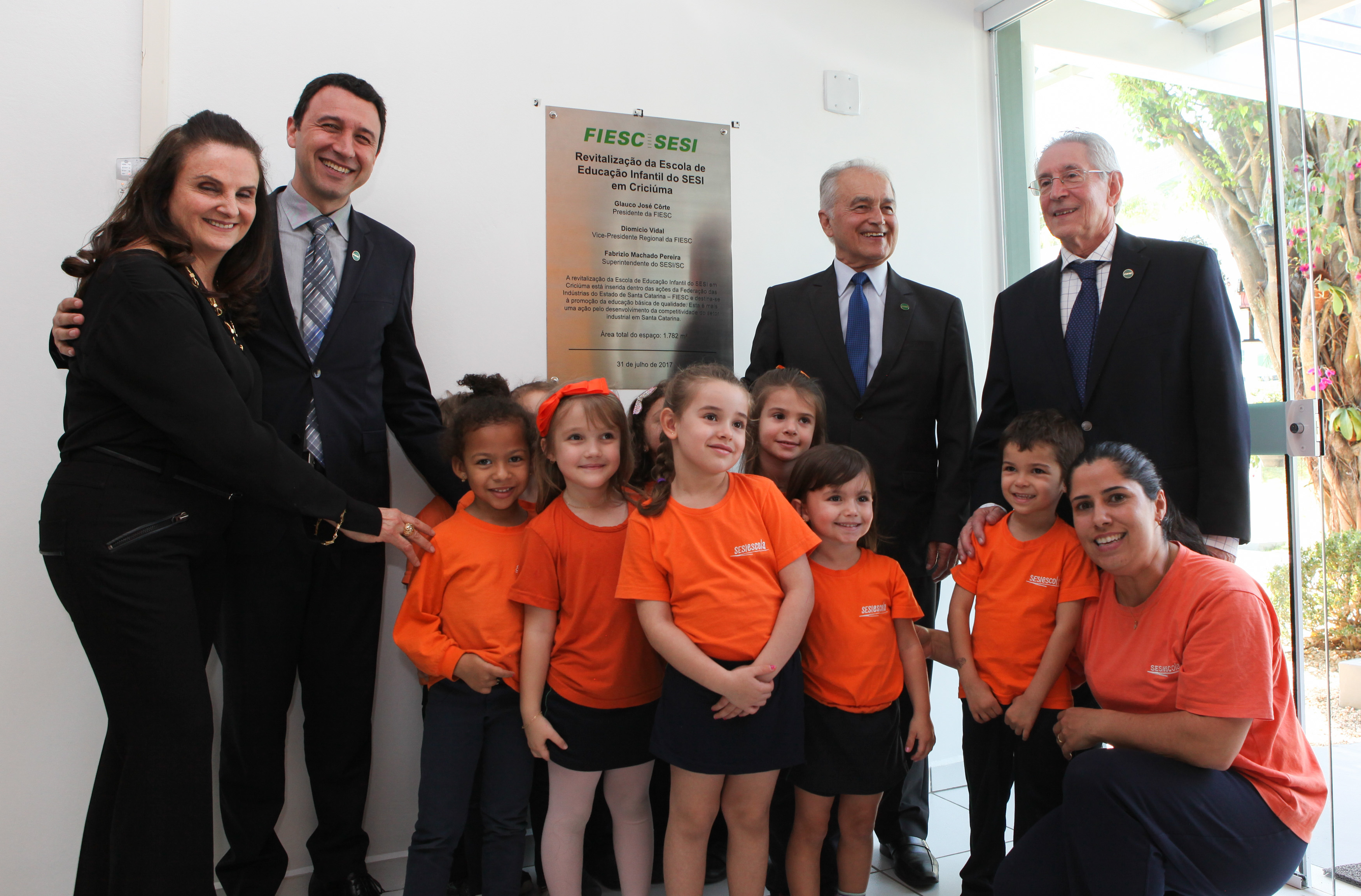 Criciúma, 31.07.2017 – O SESI, entidade da FIESC, entregou nesta segunda-feira (31) a revitalização da Escola de Educação Infantil em Criciúma. Localizada no Bairro Comerciário, a escola atende 370 crianças, do berçário até os 6 anos de idade, filhos de trabalhadores de indústrias e também da comunidade. Os alunos são distribuídos em 19 turmas, sendo 15 delas em período integral. Com área total de 1.782 m² e um investimento de R$ 2 milhões, o espaço conta com 19 salas de atividades - salas de artes, sala de professores, auditório, dois fraldários, refeitório, área verde, espaço para horta, cozinha experimental e parque infantil. Além da troca de todo o telhado, foi realizado revestimento e pintura externa do prédio, modificação da fachada, construção de solários e revitalização de banheiros.