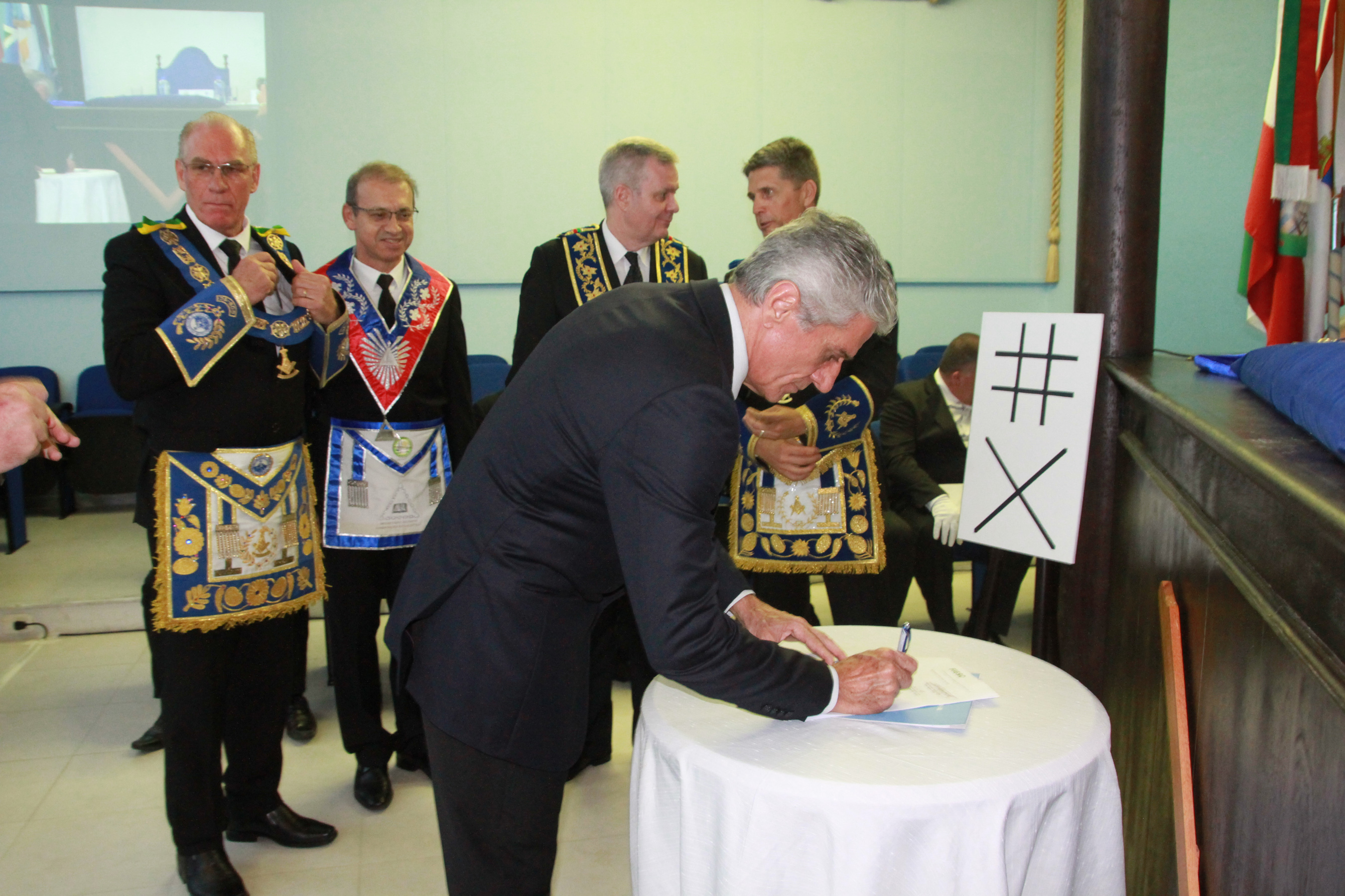 Além de Carradore, assinaram o documento os grão-mestres Adalberto Eyng, do Grande Oriente do Brasil-SC, Flávio Graff, da Grande Loja de Santa Catarina, e Rubens Franz, do Grande Oriente de Santa Catarina, além do presidente da diretoria executiva da Fundação Hermon e diretor do SENAC, Rudney Raulino.