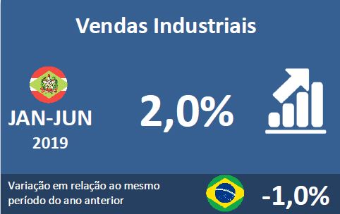 As vendas industriais de junho reduziram -15,7% na comparação com o mesmo período do ano passado. O resultado negativo tem relação com a greve dos caminhoneiros. As vendas de maio de 2018 ficaram represadas e foram efetivadas em junho, o que resultou numa alta de 32,2% no faturamento, percentual bem acima da média para o mês.