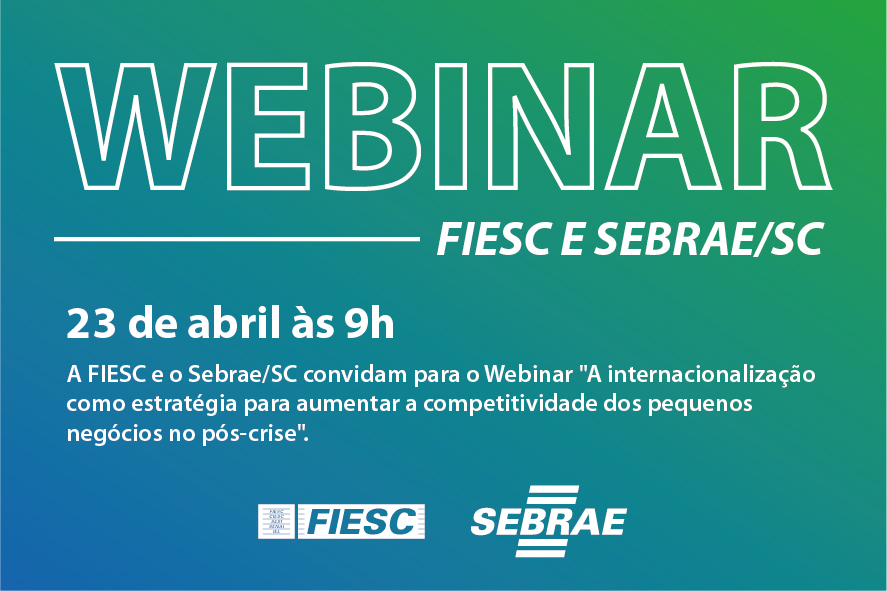 Florianópolis, 20.4.2020 – Neste momento em que o mundo enfrenta uma crise, a internacionalização pode ser um componente aliado das micro e pequenas empresas que buscam aumentar a sua competitividade. Para debater esse tema, a Fiesc e o Sebrae/SC promovem na próxima quinta-feira, 23, o webinar “A internacionalização como estratégia para aumentar a competitividade dos pequenos negócios perante a pandemia da Covid-19”. O evento online será às 9 horas e as inscrições, gratuitas, podem ser feitas pelo endereço sebrae.sc/webinar-internacionalizacao.